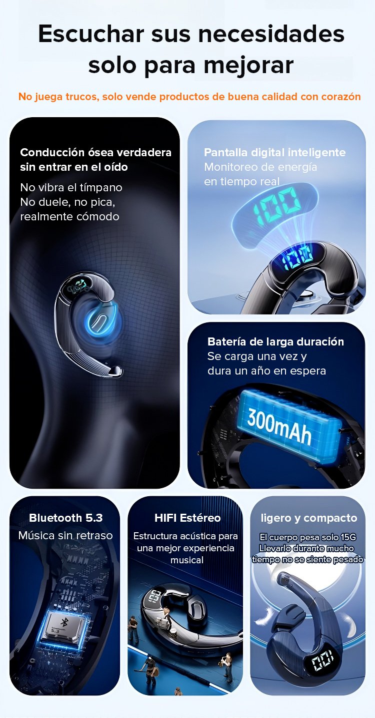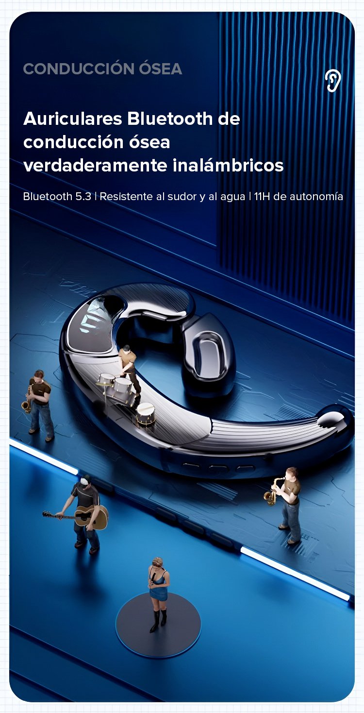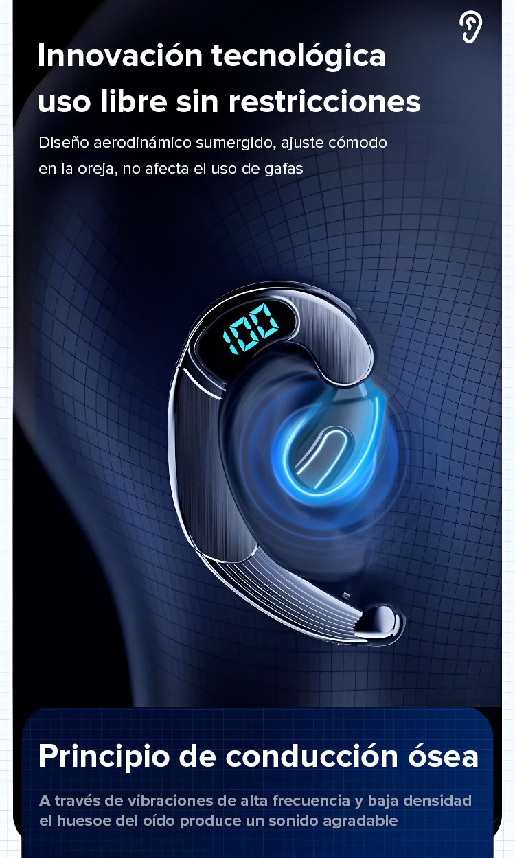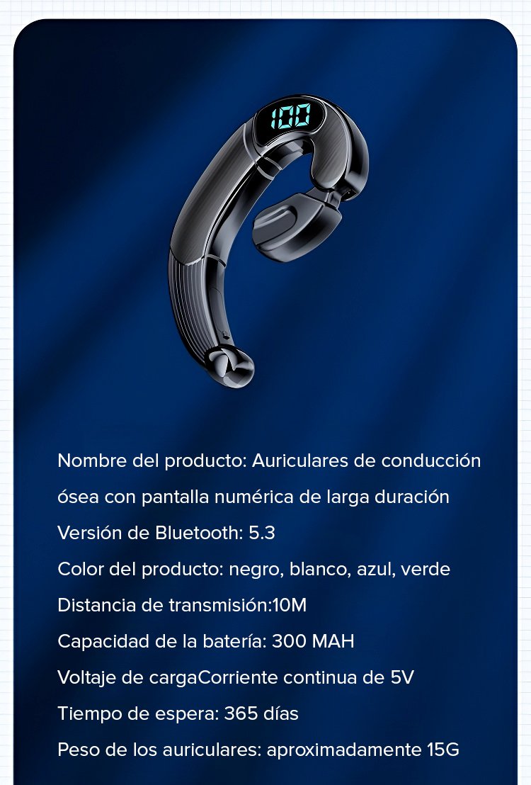 Auriculares de conducción ósea con pantalla numérica de larga duración