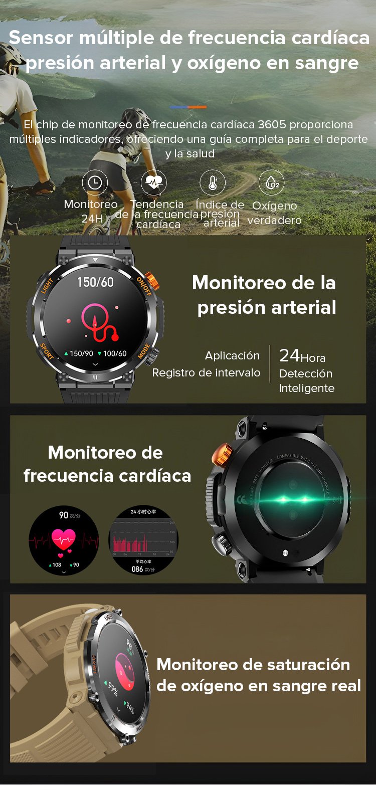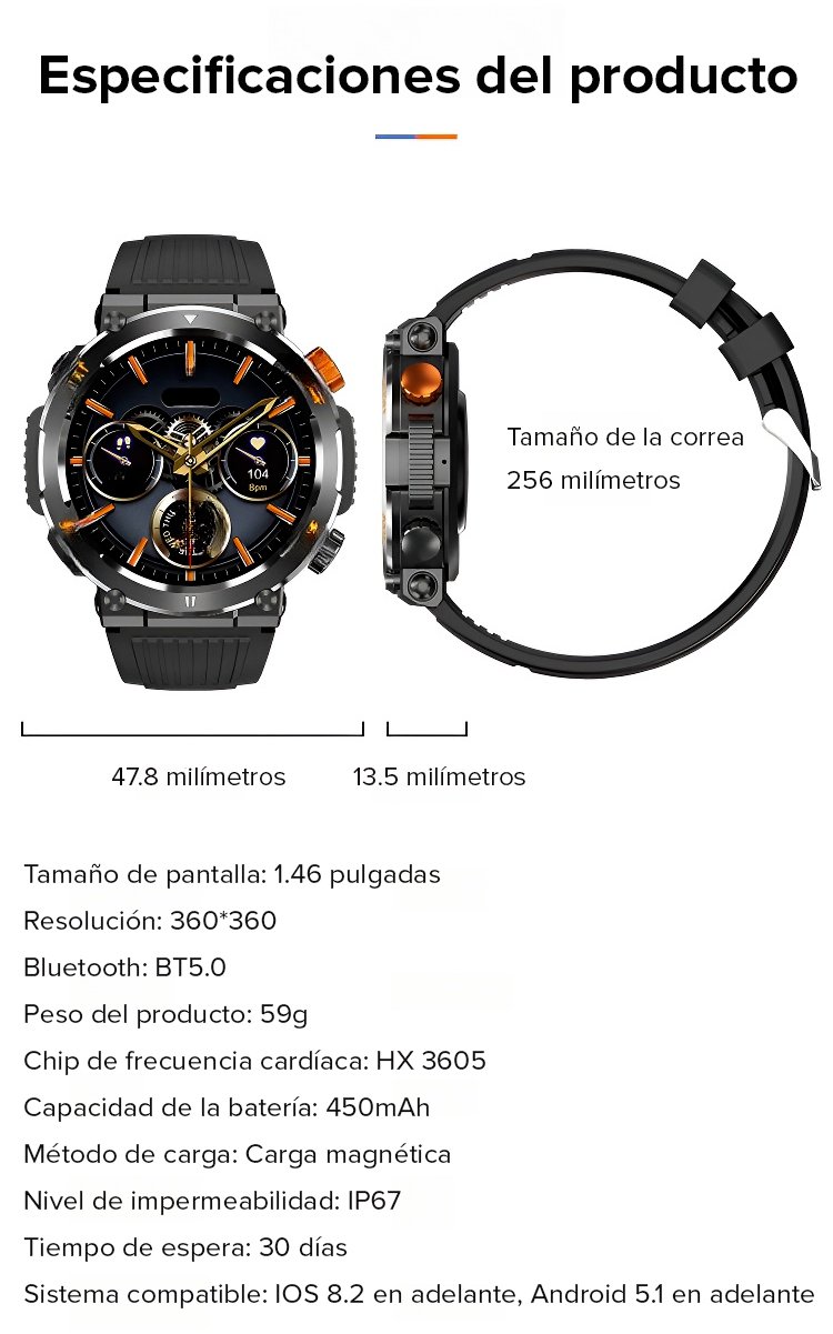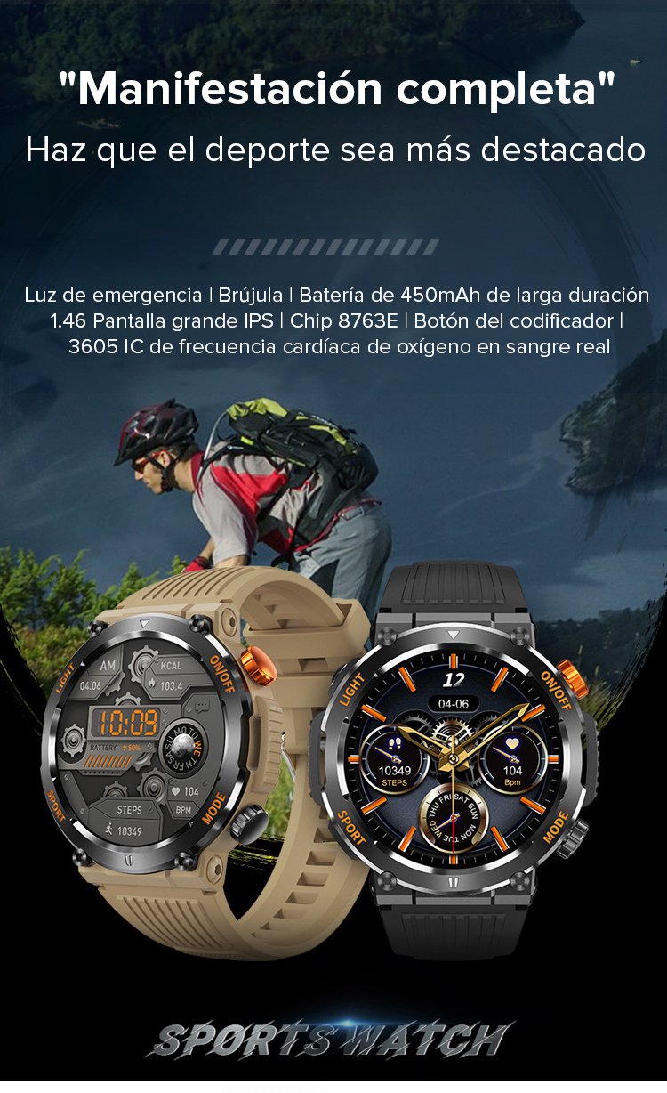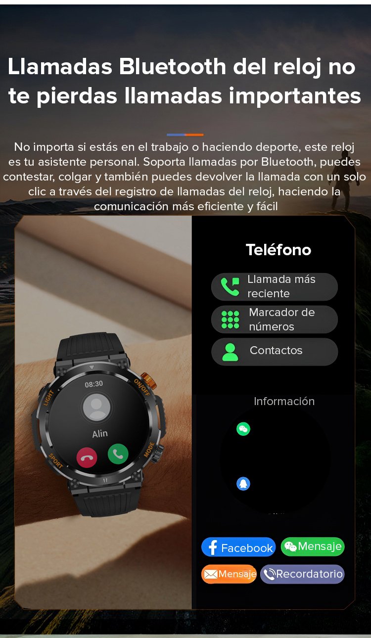 【Con luz LED incorporada】 Reloj inteligente todopoderoso para exteriores con llamada Bluetooth