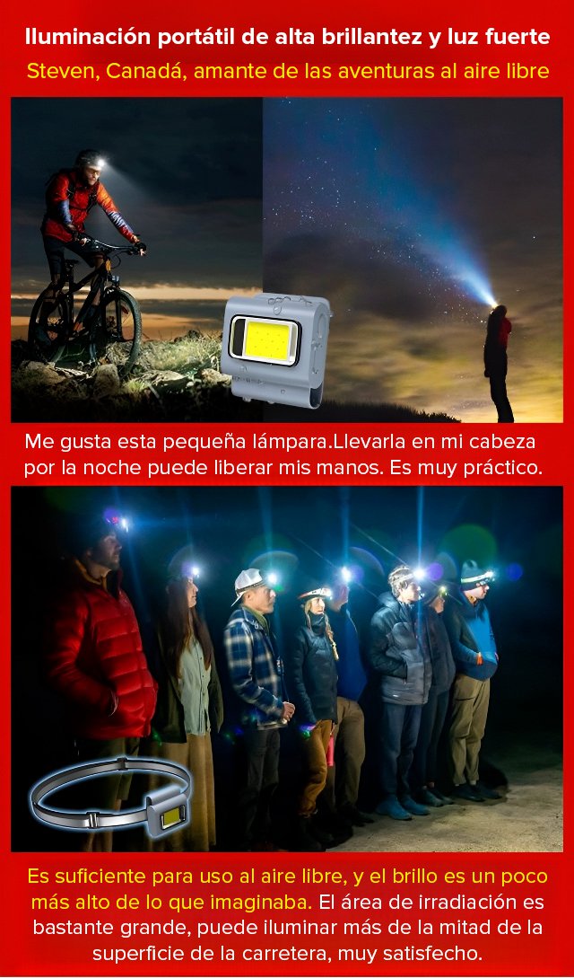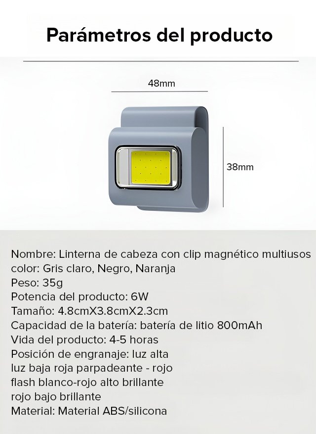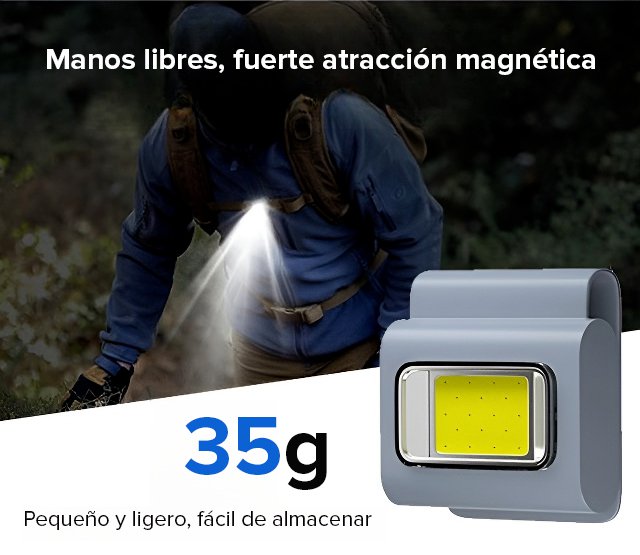 Linterna de cabeza con clip magnético multiusos